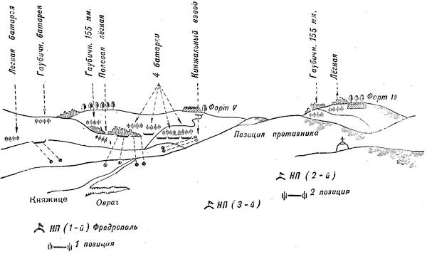 См. схему 15 (копия с кроки, составленной адъютантом 2-го дивизиона 46-й артиллерийской бригады).