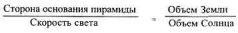 Длина ребра пирамиды Хеопса – 220, 64 метра. Средняя длина стороны ее основания – 230, 364 метра. 220, 64: 230, 364 = 0, 958