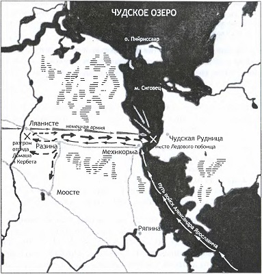 [5]. Академик Тихомиров называл 5 апреля 1242 г. «величайшей датой», а Ледовое побоище — «знаменательной битвой», сопоставимой лишь с Грюнвальдским сражением 1410 г.