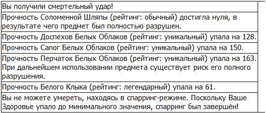 Защита Белого Мечника, чей класс позиционировался как атакующий, была ниже, чем у других игроков 300-го уровня. Более того, Крюгель снял свои перчатки, опасаясь, что они попросту сломаются, если получат чуть больше повреждений.