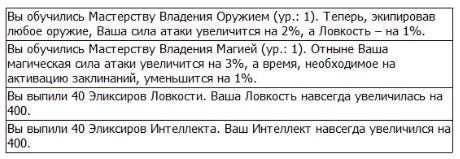 – Я купил пять Эликсиров Ловкости и одну редкую книгу навыков.