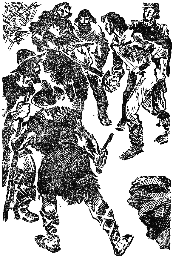 Битва не могла не представлять опасности. В изнеможении, едва дыша, они были не в состоянии выдержать натиск такого страшного врага. Бесполезно и говорить, что у них не было времени перезарядить ружья. Решив защищаться ножами во что бы то ни стало, они вероятно исполнили бы это с честью, если бы завязалась борьба.