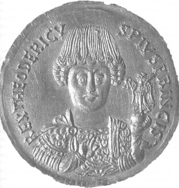 Восточный император Феодосии II решил возвести на западный престол своего семилетнего двоюродного брата Валентиниана, сына Галлы Плацидии, о жизни которой мы подробно рассказали в книге первой. Мальчика провозгласили императором 23 октября 425 года, регентом при Валентиниане III стала его знаменитая мать, которая вновь обрела титул августы. Во внутренней политике она следовала старинной аксиоме, гласящей, что внутреннее единство империи важнее всего и что только общая солидарность римлян способна обеспечить победу над внешним врагом.
