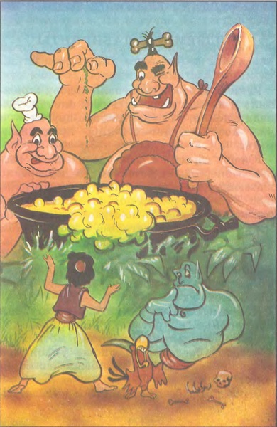 Зато в Каменном Краю было настоящее столпотворение. Орды мешиков долго бежали вслед за улетающим Драконом и наперебой приглашали его принять участие в спортивных соревнованиях. Позже они устроили настоящую спартакиаду за право обладания волшебным кольцом, которое Алладин сбросил на них сверху.
