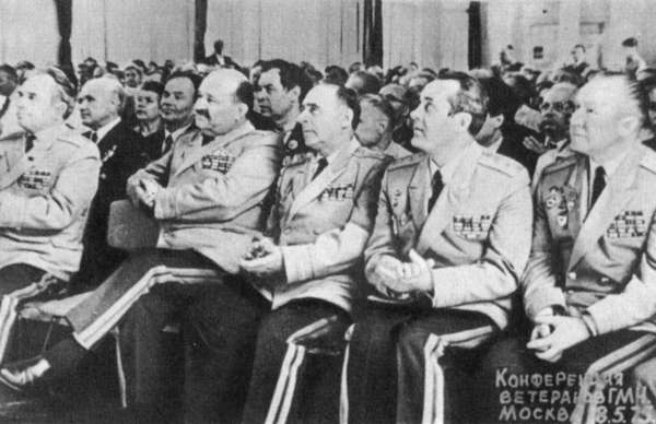 Большое празднество проводилось и 4 — 5 сентября — в честь 40-летия ГМЧ. Ветераны побывали в Звездном городке. Более 300 фронтовиков собрались в Краснознаменном зале ЦДСА. Опять воспоминания о боях, о товарищах. С докладом выступил первый заместитель начальника ГРАУ МО СССР генерал-лейтенант В. Я. Лебедев. Собравшихся приветствовали воины Вооруженных Сил, пионеры Москвы. Участники торжеств сфотографировались у Знамени Победы в Центральном музее Вооруженных Сил СССР, с полковыми знаменами — возле родной «катюши».