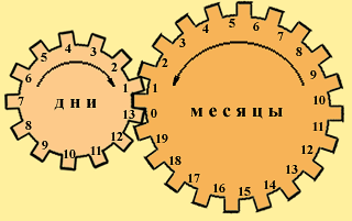 Учитывая, что продолжительность земного года составляет 365,256 суток, а полная смена фаз Луны происходит через 29,53 суток, можно легко определить, что в один и тот же день календарного года через каждые 19 лет Луна находится в одной и той же фазе. И более того, на протяжении этого 19-летнего цикла Луна еще дважды находится в той же своей фазе в тот же календарный день — через 8 и 11 лет после начала 19-летнего цикла.