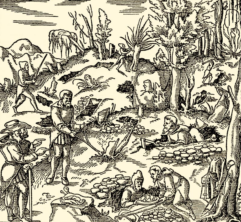 Рис. 3. Поиск руды с помощью лозоходства (средневековая гравюра)