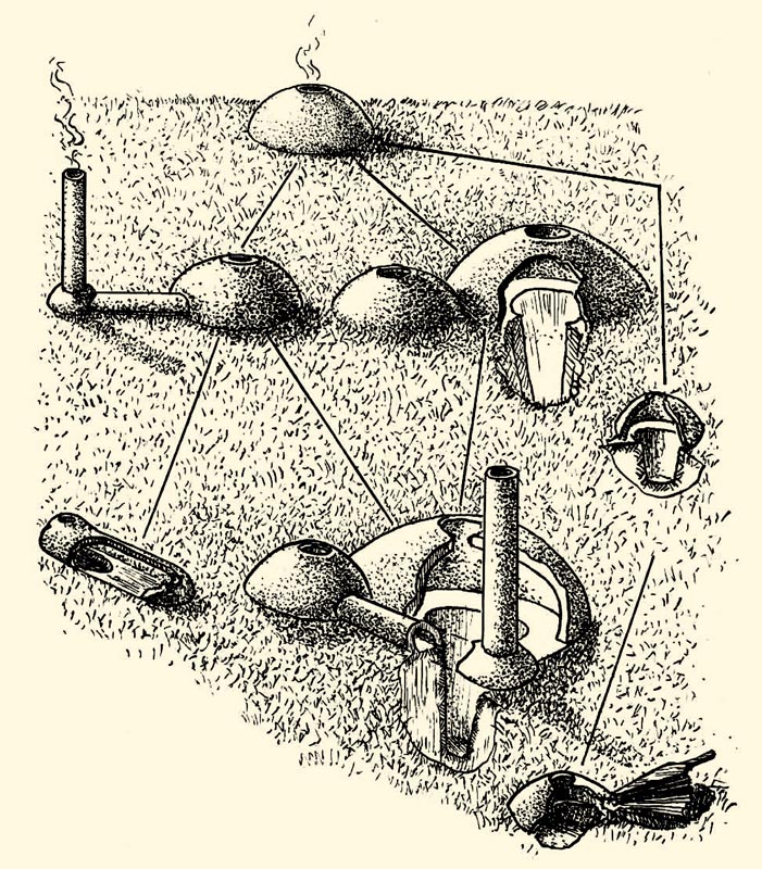 В ходе дальнейшего экспериментирования люди усовершенствовали место плавки, заменив обычный костер закрытой печью. А для повышения температуры внутри печи придумали систему подвода необходимого для этого кислорода – сначала с естественным притоком воздуха, а затем и с искусственным поддувом. С той же целью вместо обычных дров стали использовать специально подготавливаемый древесный уголь. Изменилось и место плавки – руду помещали уже не прямо в огонь, а в керамический сосуд (тигель).