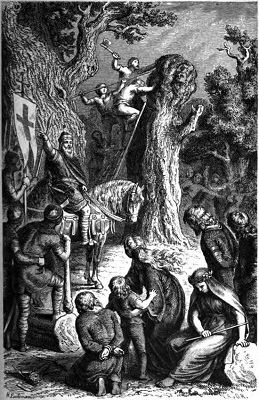 Бонифацию было 80 лет, когда он, в 753 г. отправившись в свою последнюю миссию к фризам, был убит по дороге неизвестными — грабителями, или язычниками, или грабителями-язычниками. В музее кафедрального собора г. Фульда хранится Евангелие, которым «апостол Германии» пытался защититься, со следом от меча, прорубившего и тяжелую кожаную крышку, и страницы священной книги.