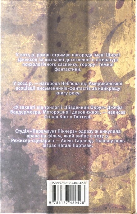 Це була моя остання надія, я і почала придумувати історію доглядача маяка, я старалася з усіх сил, навіть коли знову прямувала до базового табору. Це було складно тому, що я нічого не знала про його життя, не мала жодних зачіпок, які могли допомогти мені його уявити. Я мала тільки фото і той жахливий погляд на нього у Вежі. Все, про що я могла думати, — це, що колись, можливо, цей чоловік жив нормальним життям, але жоден із звичних ритуалів, які визначають нормальність, не має жодної тривкості — і не здатен захистити. Його підхопила буря, яка досі не стихла. Можливо, він навіть бачив її наближення з верхівки маяка, коли хвиля Події наближалася.