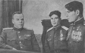 Но тут же я увидел факел над танком Русакова — противник тоже открыл огонь. Следующий удар пришелся по броне моего танка. Ясно было, что противник бьет из-за укрытия, но откуда именно, никак не мог установить. Хотел наугад еще раз выстрелить, но не успел — новый снаряд ударил по броне, и на мои плечи свалилось безжизненное тело башенного стрелка сержанта К. Н. Кравченко.