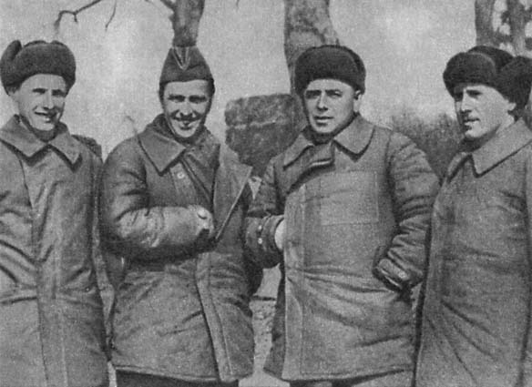 С. И. Куликов, А. И. Куликов, И. В. Веневидов, А. И. Груздев на монтаже стрелковых установок в 1940 году