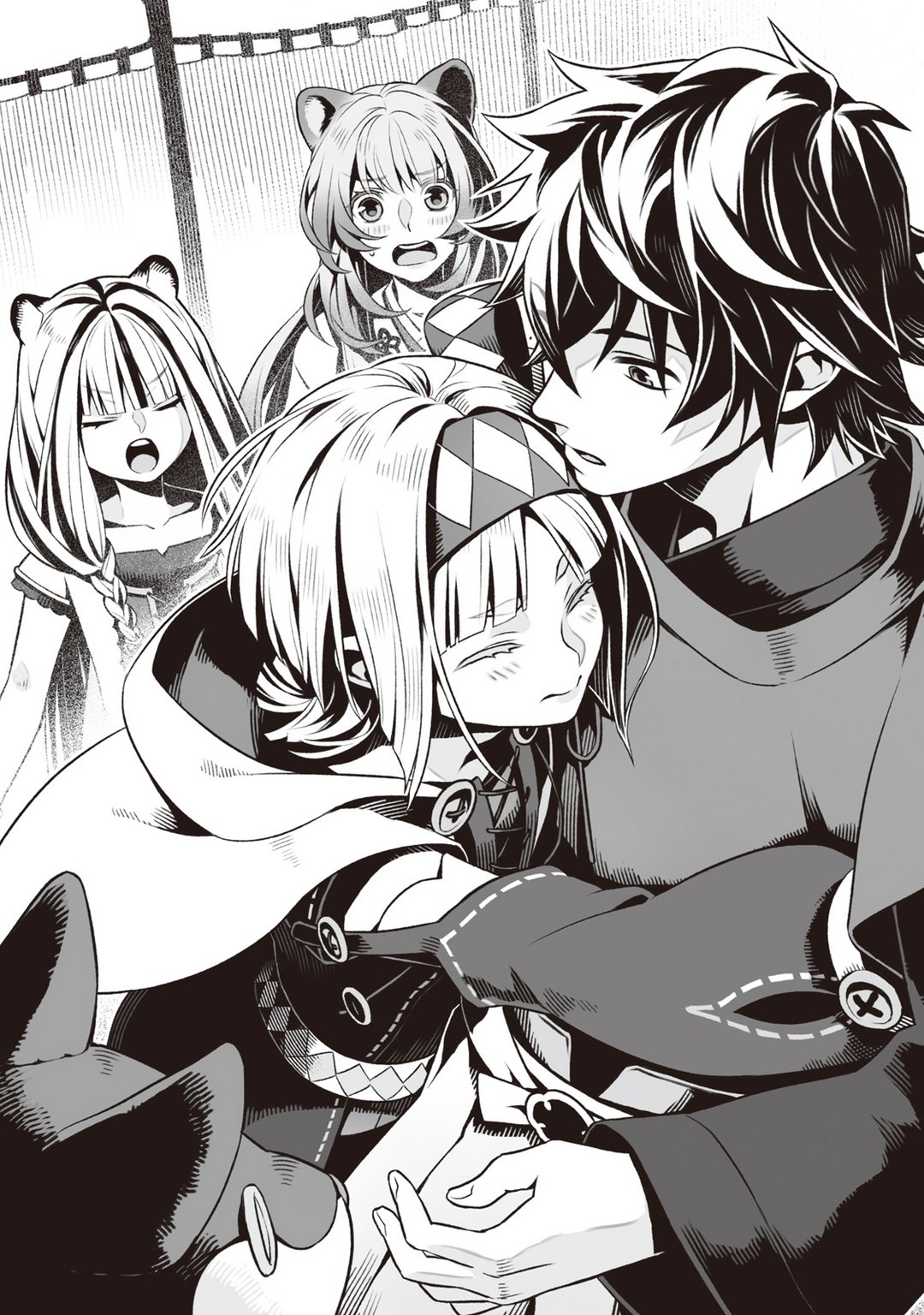 Как и Наофуми, я очень плохо отношусь к подковёрной борьбе дам высшего общества. Терпеть не могу придворные интриги. Вкратце подводя итог случившихся интриг: все прямые родственники Рафталии погибли во время дворцовых переворотов, однако несколько далёких выжили. Макина к ним не относится. Можете считать, что она оставила в живых одного дальнего родственника Рафталии, потому что без повелителя в роли символа страны управлять ей было бы намного труднее. Большие потрясения в Кутенро могли привести к утечкам технологий во внешний мир, к тому же мало ли — вдруг в стране есть какие-то древние механизмы защиты на случай полного вымирания всех носителей королевской крови. Разумеется, о том, чтобы позвать обратно родителей Рафталии, речи тоже идти не могло. Отец Рафталии молодец, раз решил сбежать от этой борьбы подальше. Знакомые с веб-версией люди могут на этом месте задуматься о том, почему первая волна случилась именно рядом с деревней Рафталии.