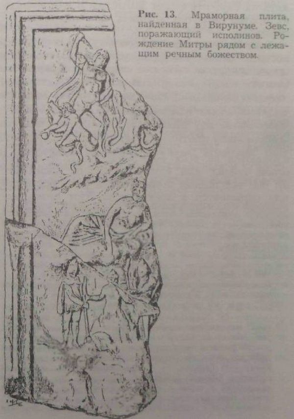 В действительности, именно Германия является тем местом, где открыто больше всего святилищ Митры; именно здесь найден барельеф самых больших размеров и с наиболее полными изображениями,[47] (Рис. 5) и, безусловно, ни один языческий бог не нашел здесь больше ревностных почитателей, чем Митра.