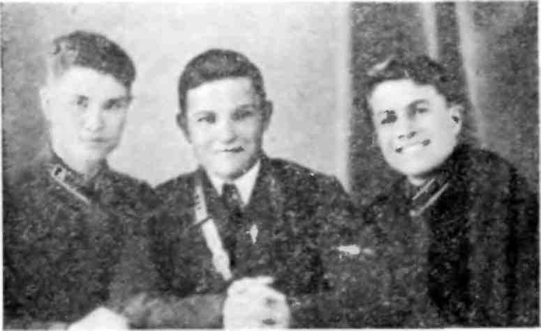 На тумбочке у своей кровати увидел белый конверт. Вскрыл его и извлек густо исписанный листок бумаги, а в нем — фотография: Лева снят с друзьями детства Тимофеем Студенниковым и Михаилом Ничиком. Сам он — в летной форме, ребята — в тужурках с петлицами и эмблемами студентов Института инженеров дорожного транспорта. Все молоденькие, задорные, улыбающиеся…