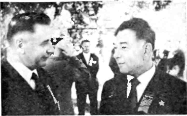 Ветераны полка Н. А. Верховец и М. С. Твеленев. 1974 г.