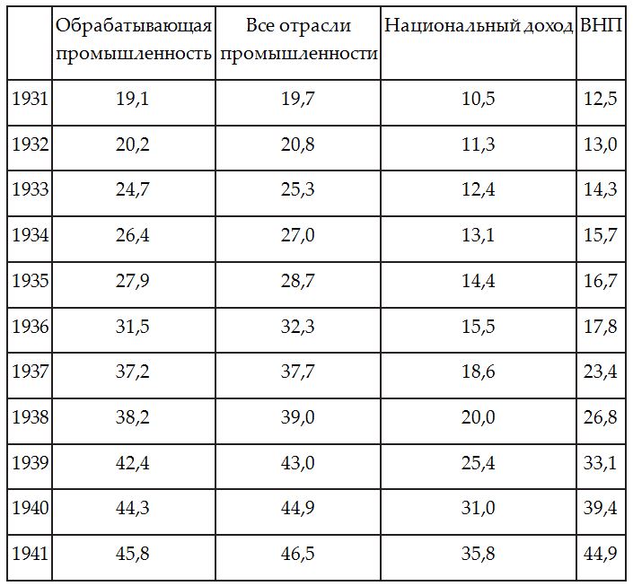 [265] С 1932 по 1938 год индекс завершенного строительства вырос на 163,2% – с 38 до 100.