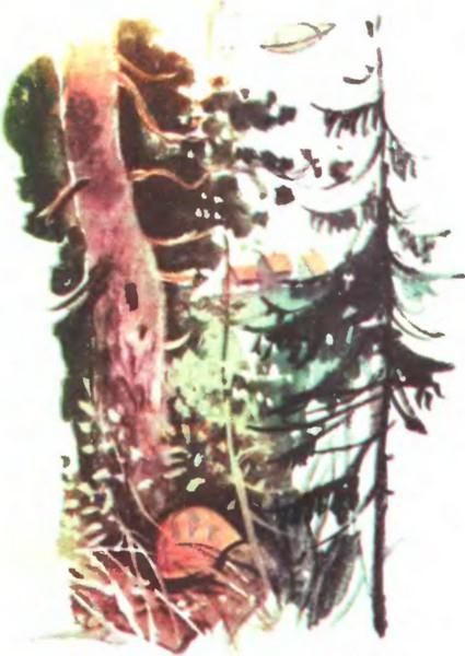 Костер догорал. Лишь багровые огоньки пробегали иногда по подернутым серым пеплом углям. Геня долго смотрел на них, потом встал и было пошел, но почувствовал, что за спиной у него стоит человек. Геня слышал его мысли, в которых боролись страх, голод, желание подойти, снова страх. Он медленно обернулся. Шагах в десяти от него стояла за сосной маленькая девочка.