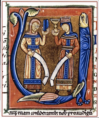 В средневековой иконографии множество персонажей держит в руках развернутые