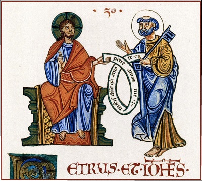 Exultet). В нем есть изображение юного императора, который восседает на престоле между двумя порфирными колоннами, обозначающими зал дворца. Он примерно в два раза выше стоящих вокруг людей