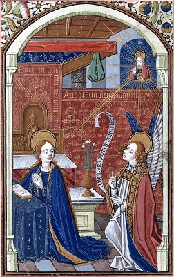 Благовещение. Дева Мария, не смея поднять взор на архангела Гавриила, придерживает рукой богато украшенную рукопись, которая лежит перед ней, — золоченый обрез, текст в две колонки с киноварными заголовками, миниатюра в лист с изображением молящегося царя Давида. Эта книга похожа на Псалтирь или на Часослов, по какому в позднесредневековой Европе так часто молились аристократы или богатые горожане, а чаще их жены и дочери. Современная практика и современный предмет переносятся воображением в новозаветную сцену. Глядя на Богоматерь-читательницу, итальянцы, французы или фламандцы, жившие в XIV–XV вв., получали урок благочестия. Их призывали не только молиться Деве Марии, но и молиться, как она. Книга — в древнем обличье свитка или в привычной для нас форме кодекса — одна из вещей, которые чаще всего изображались в средневековой иконографии. Это одновременно и реальный предмет, и богословская метафора. В Откровении Иоанна Богослова (5:1), которое на протяжении многих столетий питало христианское воображение, упоминалась книга, «написанная внутри и отвне, запечатанная семью печатями». Сидящий на престоле Бог-Отец передал ее Агнцу — Богу-Сыну, который своей крестной смертью искупил первородный грех, довлевший над человечеством. Кодекс, который держит Христос, символизирует Слово Божье, которое было даровано человечеству в Ветхом и Новом заветах. Одновременно книга в руках Бога-Сына обозначает его самого.