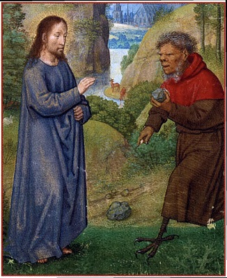 атрибутами, помогавшими их узнать среди прочих святых. У некоторых мучеников эту роль взяли на себя не инструменты их пытки и казни, а пострадавшие от нее, вырванные или отрезанные органы и части тела. Это были своего рода визуальные реликвии, напоминавшие о страданиях и стойкости святых, принявших смерть во имя Христа. Но как изображали небесных патронов, лишенных какого-то органа: в совершенном или в изувеченном теле? И почему монахи Сен-Дени и каноники парижского Нотр-Дама спорили в суде о том, как именно отрезали голову св. Дионисию? вой опознавательные знаки были не только у святых, но и на противоположной стороне духовных баррикад — у демонов. Дьявол в христианском представлении — великий искуситель, а потому непревзойденный мастер перевоплощений. Чтобы сбить с истинного пути отшельников и прочих христианских подвижников, он постоянно использует наваждения: оборачивается соблазнительной девицей (чтобы у аскетов взыграла плоть) или принимает облик светлого ангела или самого Христа (чтобы тот, кому явлено такое видение, впал в грех гордыни, решив, что действительно его достоин). Изображая дьявольские иллюзии, средневековые мастера стремились показать маску, которую надел на себя искуситель, и — во имя наглядности и дидактики — тотчас же ее «сдернуть». Как была устроена эта игра в