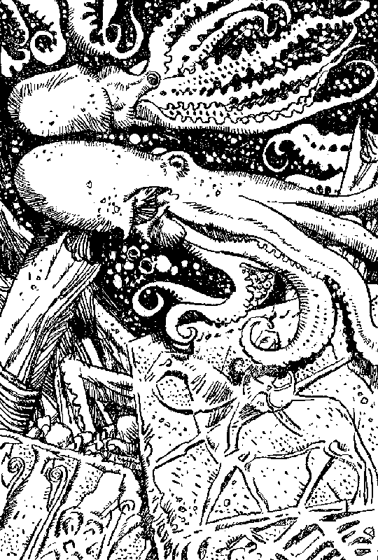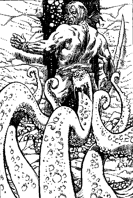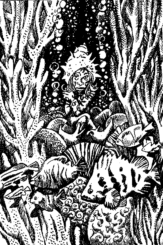 Ты соглашаешься. Сопровождаемый огромной толпой придворных и слуг, ты поднимаешься по лестнице и оказываешься в богато убранных покоях, где на мягком роскошном ложе, устланном нежнейшими водорослями, спит заколдованная принцесса. Глаза ее подобны жемчугам, пальчики тонкие как побеги морских анемонов, кожа своим нежным цветом поспорит с драгоценным жадеитом. Да, она, бесспорно, прекрасна… с точки зрения глубоководных! А это значит, что более отвратительной образины ты еще не видел в жизни! Придворные в нетерпеливом ожидании толпятся у тебя за спиной.