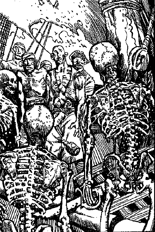 Но Капитан Бладекс мигом утихомиривает разбушевавшихся подонков: «Да что вы, ребята! Как это жестоко с вашей стороны! Вам должно быть стыдно! Этот молодец один чуть было не обратил вас в бегство и положил многих наших товарищей! Такой отважный воин должен быть награжден по заслугам и покинуть борт нашего корабля без единой царапинки!»