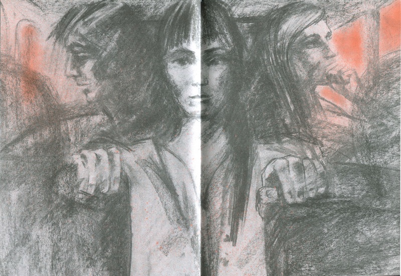 Ми їхали мовчки, а сумка лежала в нього на колінах. Я чекала, що він скаже щось про малюнки. Думала, що в ньому наростає новий припадок люті, що він зараз викине малюнки через вікно. Але він тримав сумку обома руками, немов оберігаючи, і дивився на темну дорогу, що розгорталась перед нами. Після тривалої мовчанки він сказав: