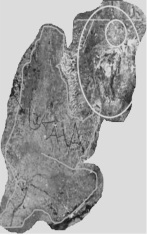 Ранее в этом месте я нашла по мегалитическим подсказкам голову князя Рош, а теперь, по подсказке А.С. Пушкина, нашла Бабу-Ягу, дисколёт с мордой пса внутри, змея и царевну. Между дисколётом и Бабой-Ягой нарисована морда рогатого животного. На рельефе выбито много букв. Текст у меня получился такой: «Шира (Сириус). Ариани(ы) Ра. Коти зри. Лос(ь) зри. Зайки Ра». Речь идёт о тех же созвездиях, что и на рельефе России. Лось считался созвездием Большой Медведицы, а созвездие Заяц находится рядом с созвездием Большого Пса, где дом Сириуса. Месту положения Бабы-Яги на рельефе соответствует созвездие Эридан, которое камни называют Храмом Мары, то есть, смерти. Ниже Эридан находится созвездие Печь, наличие которого наводит на мысль о том, как Баба-Яга в русской народной сказке хотела зажарить в печи мальчика или девочку (зависит от варианта сказки). Созвездие змея – это ящер со звездой Канопус, которого я нашла по камням в селе Чистоводное: