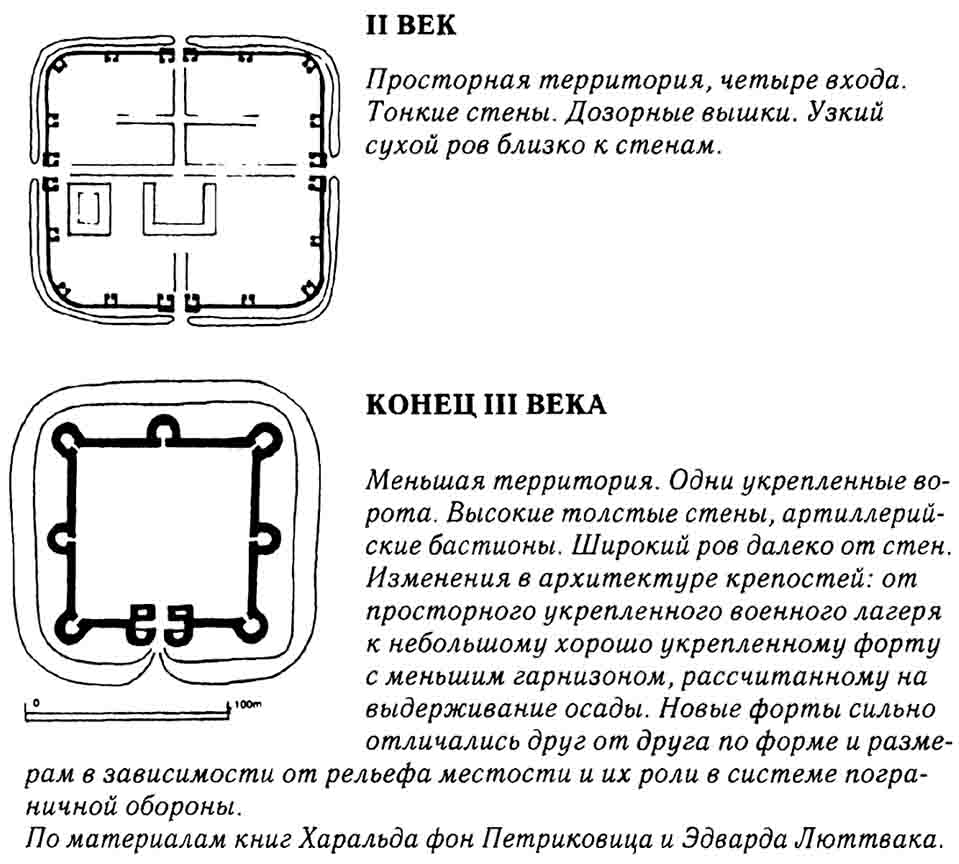 Alle Manner); племена из низовий Рейна стали называться франками; а приморские обитатели устья Эльбы и Везера объединились в племенной союз саксов. Несмотря на отсутствие внутреннего единства, эти племенные союзы осуществляли вооруженные походы совершенно иного уровня, превосходящего все расчеты создателей тщательно спланированной обороны римских границ. Римляне исходили из предпосылки, что нападение германцев на любом отдельно взятом участке можно предугадать и нейтрализовать, не пуская врага на территорию империи. Но при первом же массовом вторжении Марк Аврелий обнаружил, что сеть построенных римлянами дорог открывала варварам путь к самому сердцу империи. Спустя еще 30 лет всевозрастающей угрозы Рим наконец понял, что его империи угрожает непрерывная цепь племенных союзов, растянувшаяся от Северного до Черного моря: саксы, франки, алеманны, маркоманны, квады, сарматы, языги, готы, карпы. Старые методы дипломатии, опиравшиеся (более или менее явно) на военную силу, здесь оказались неэффективны. В условиях крайнего напряжения на границах эта военная сила должна была быть доступна в любой момент. Это возлагало дополнительное бремя на армию, поскольку теперь безопасность границ требовала постоянного присутствия на месте службы всех солдат гарнизона.