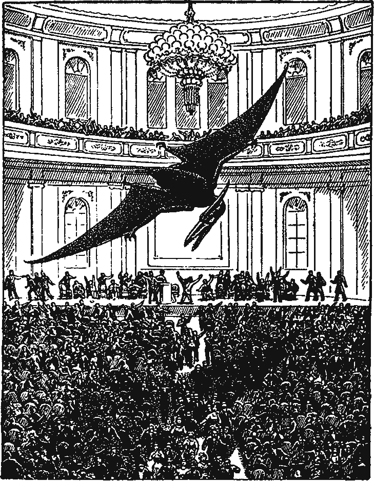 Плезиозавр — вымершее хищное морское пресмыкающееся, обладавшее широким, уплощенным телом, большими ластами и длинной шеей. Плезиозавры жили в юрском и меловом периодах, некоторые представители достигали исполинских размеров (пятнадцати метров в длину). Указание автора на нахождение плезиозавра в глубине материка, в горном озере, абсолютно невероятно.