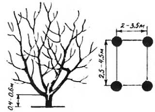 карликовую низкоштамбовую (0,4–0,6 м), хотя, конечно, встречаются и другие промежуточные размеры. Высокоствольные деревья обычно разводят на больших площадях, промежутки заполняют другими культурами. А в домашнем саду с крупными деревьями управляться трудно.