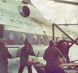Грузы, которые боятся холода, доставляют на берег вертолётами.
