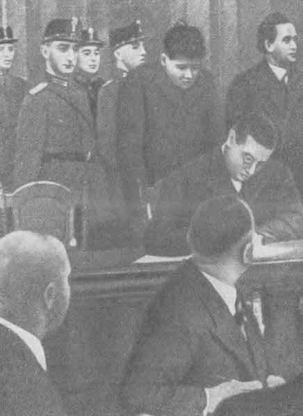 Оглашается приговор Крайний справа — Димитров, рядом с ним Ван дер Люббе.