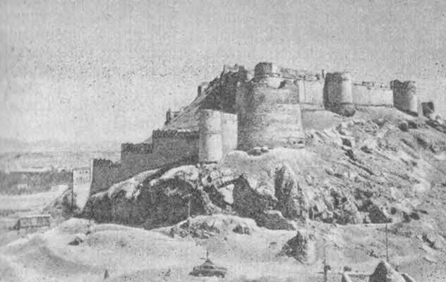 …Вдоль хребта Шир-Дарваза, то карабкаясь вверх, то стремительно падая вниз и почти нависая над городскими улицами, тянутся остатки древней глинобитной стены с большими неровными зубцами и слепыми отверстиями бойниц. Издали стена, как и бастионы крепости, кажется игрушечной, однако ее высота в некоторых местах превышает 6 м, а ширина достигает почти 4 м. От Бала-Хиссара городская стена круто спускается к небольшому ущелью, соединяющему основную часть города с его юго-восточным предместьем. Белоснежные дома с плоскими крышами террасами карабкаются здесь почти до половины вершин Асмаи и Шир-Дарваза, отчего те, и так небольшие, кажутся совсем приземистыми и неуклюжими. На вершине Асмаи построена ретрансляционная станция первого в стране телевизионного центра.