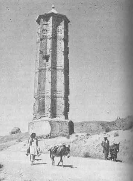 С холма хорошо видно, как на одной из площадей, образуемых пересечением Джадайи-Майванд с улицей, связывающей старый город с центральной частью, устремляется вверх конусообразная башня с кафельной отделкой на ажурных крыльях. Менар и Майванд (башня Майванда) хорошо знакома каждому афганцу, и историю битвы под Майвандом вам перескажет здесь всякий.