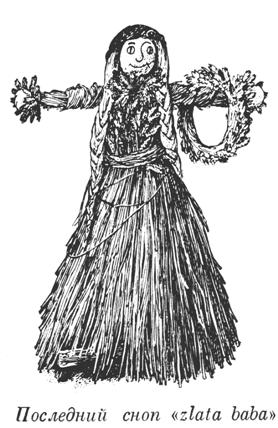 Красноречивые свидетельства функциональной направленности ритуала содержит жатвенная обрядность. Языческое миропонимание связывало природные явления, как благоприятствующие, так и несущие катастрофу земледельцу, с действиями богов и обожествленных предков; отправление «вестников» насущных нужд общины к предкам — покровителям было важнейшим ритуальным действом при жатве хлебов — завершении сельскохозяйственного сезона и залоге благополучия предстоящего. Рудименты ритуала проводов на «тот свет» проявляются, преимущественно, в действах с последним снопом или символами более стилизованными — пучком последних колосьев в форме человеческой головы или бороды, ржаным венком и т. п. В традиционной жатвенной обрядности синтезированы разные трансформированные формы ритуала. Антропоморфный облик снопа, по знаковому содержанию идентичный антропоморфному облику «рождественского полена», троицкой березке в бабьем наряде, суку с развилкой в стилизованном женском одеянии в «похоронах кукушки» и т. п., наименования его типа «старый», «баба», «дед» — рудимент отправлявшихся к праотцам «вестников», название же «именинник» — лаконичное обозначение отхода от этого обычая и трансформации его в символические формы, аналогичное финалу преданий о прекращении преждевременного умерщвления стариков с его торжественным выведением героя из тайного укрытия и приятием как мудрого наставника общины.