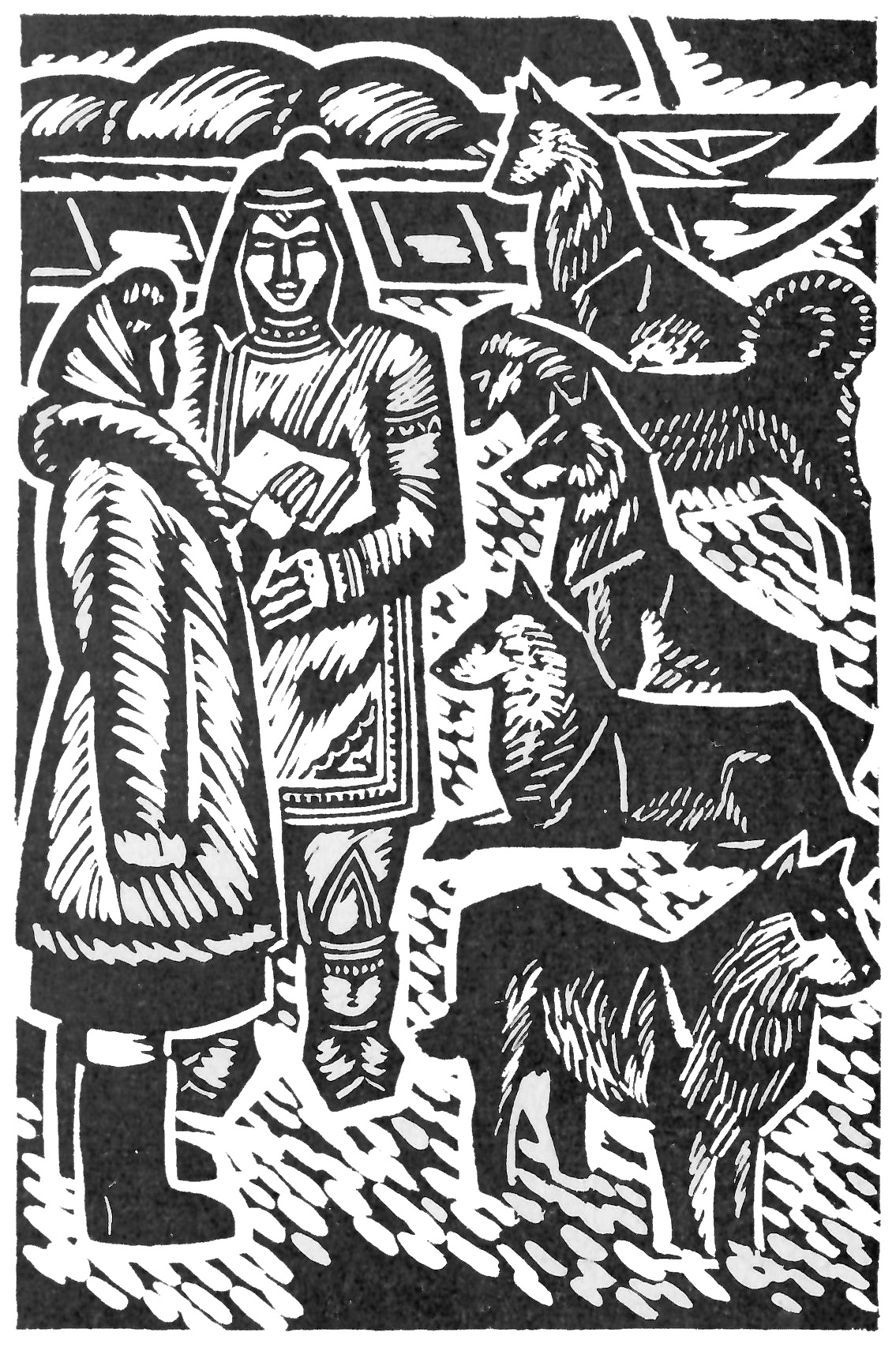 Что-то теплое и влажное коснулось руки, от неожиданности молодая женщина вскрикнула. Рука нащупала лохматую голову собаки. Вожак упряжки, любимец Сайлы, лизнул руку хозяйки. Сайла садится на землю и обнимает за шею верного пса и беззвучно плачет, уткнувшись лицом в жесткую собачью шерсть.