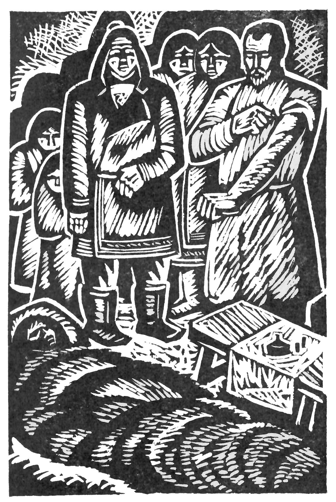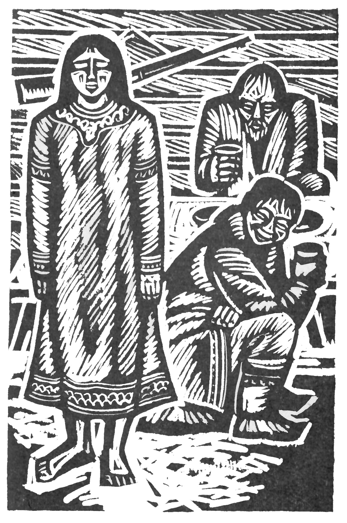 Старая жена Апы и дочери кинулись ухаживать за шаманом, только Сайла осталась неподвижной.