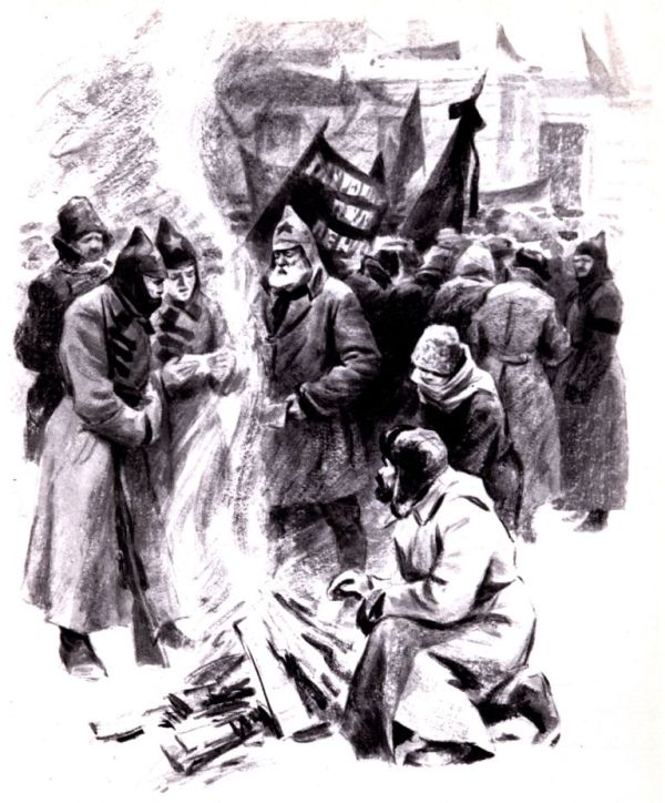 Я жадно впитывал в себя все, что видел, слышал, читал. Альбом, который всюду бывал со мной, распух от беглых набросков, предварительных зарисовок. Далекий день субботника становился как будто моим личным воспоминанием. Я уже мысленно видел будущий рисунок, что называется, «созрел» для того, чтобы начать работу над ним.