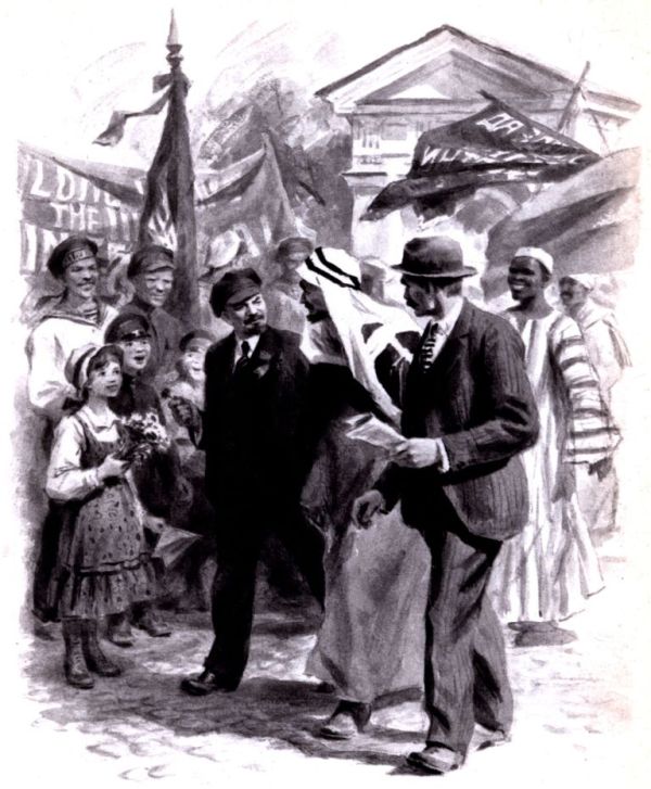 Невысокий человек в кепке, в скромном пиджаке, с алым бантом в петлице идет по свободному проходу рядом с бронзовым арабом в развевающейся одежде. Тысячи жадных, восторженных взглядов скрещиваются на нем, летят цветы, листовки, гул приветствий заглушает оркестры.