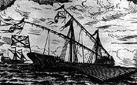 исландский викинг Лейф Эрикссон с командой из 35 человек на драккаре (корабль-дракон), совершая плавание вдоль западного побережья Гренландии,