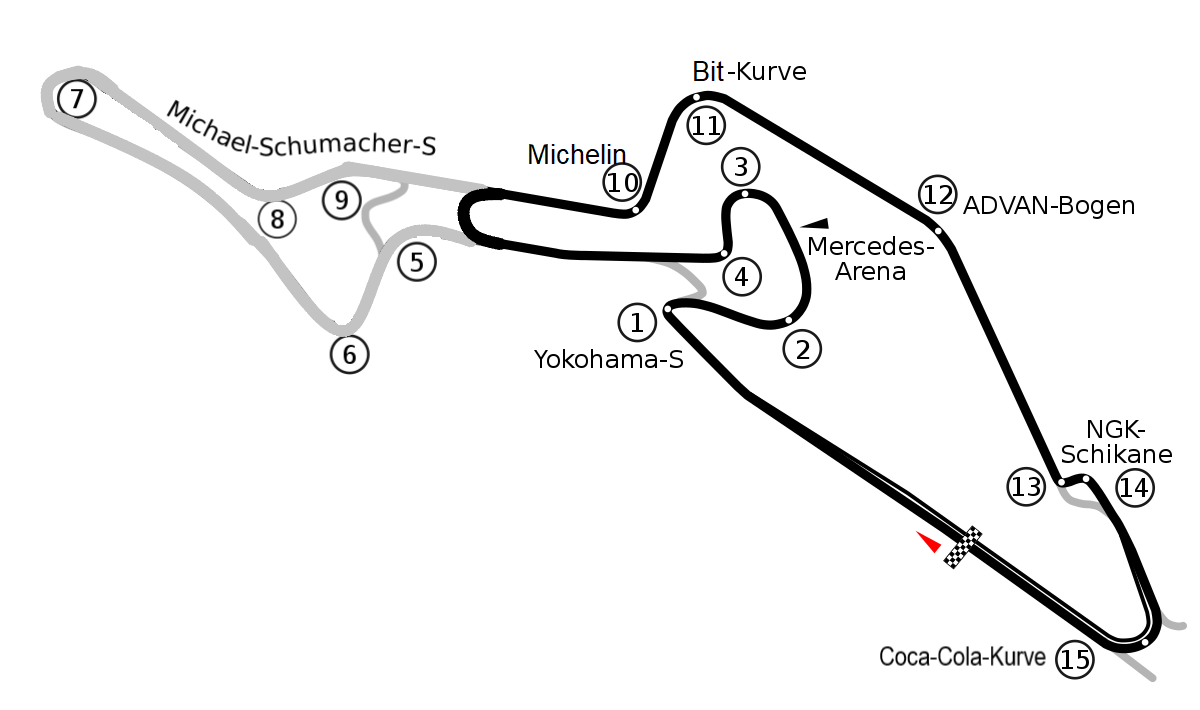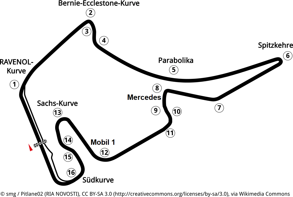 Два скруглённых прямых угла «Зюдкурве»… Остаюсь впереди, Стролл за мной, Форман перекрещивает!