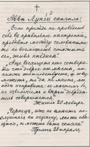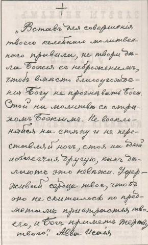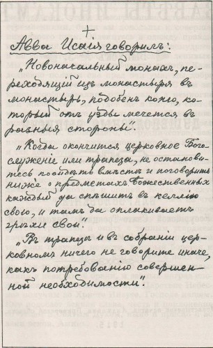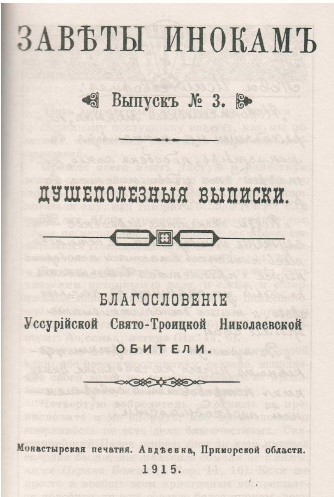И вот теперь, как крупицы живого опыта, хочу оставить этот сборник в завет и назидание, и практическое руководство инокам, и в научение мирянам: всем, в чьем сердце затеплится любовь к таинственному монашескому житию в Боге.