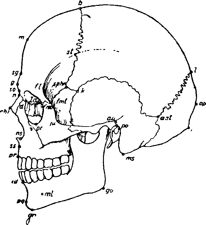 Основными точками, используемыми при измерении черепа (см. рис. 1—4), являются: