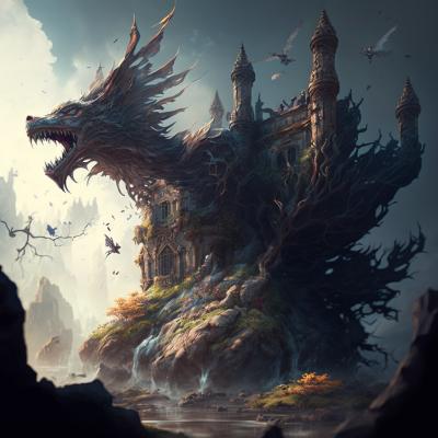 Наконец, после слез, объятий, обещаний и клятв, они вышли из Замка, а тот засветился ярким голубым светом, теряя форму и словно тая… но не до конца… голубое свечение стало обретать форму дракона — появилась голова, грудь, лапы — и вот перед ними стоит огромный синий дракон, расправивший крылья и издавший победный клич!