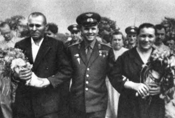 Ю. А. Гагарин со своими родителями Анной Тимофеевной и Алексеем Ивановичем.