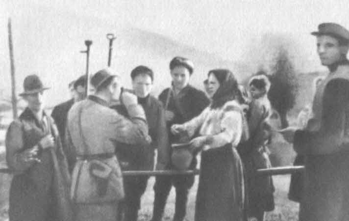 В Карпатах. Крестьянка угощает партизан молоком. Июль 1943 г.