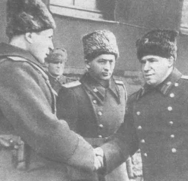 А вот пожелтевшая фотография: маршал Г. К. Жуков с генералами А. X. Бабаджаняном и П. А. Гаркушей. Под фотографией дата — 1945 год. Амазасп Хачатурович говорил, что этот снимок сделан в Берлине вскоре после победы.